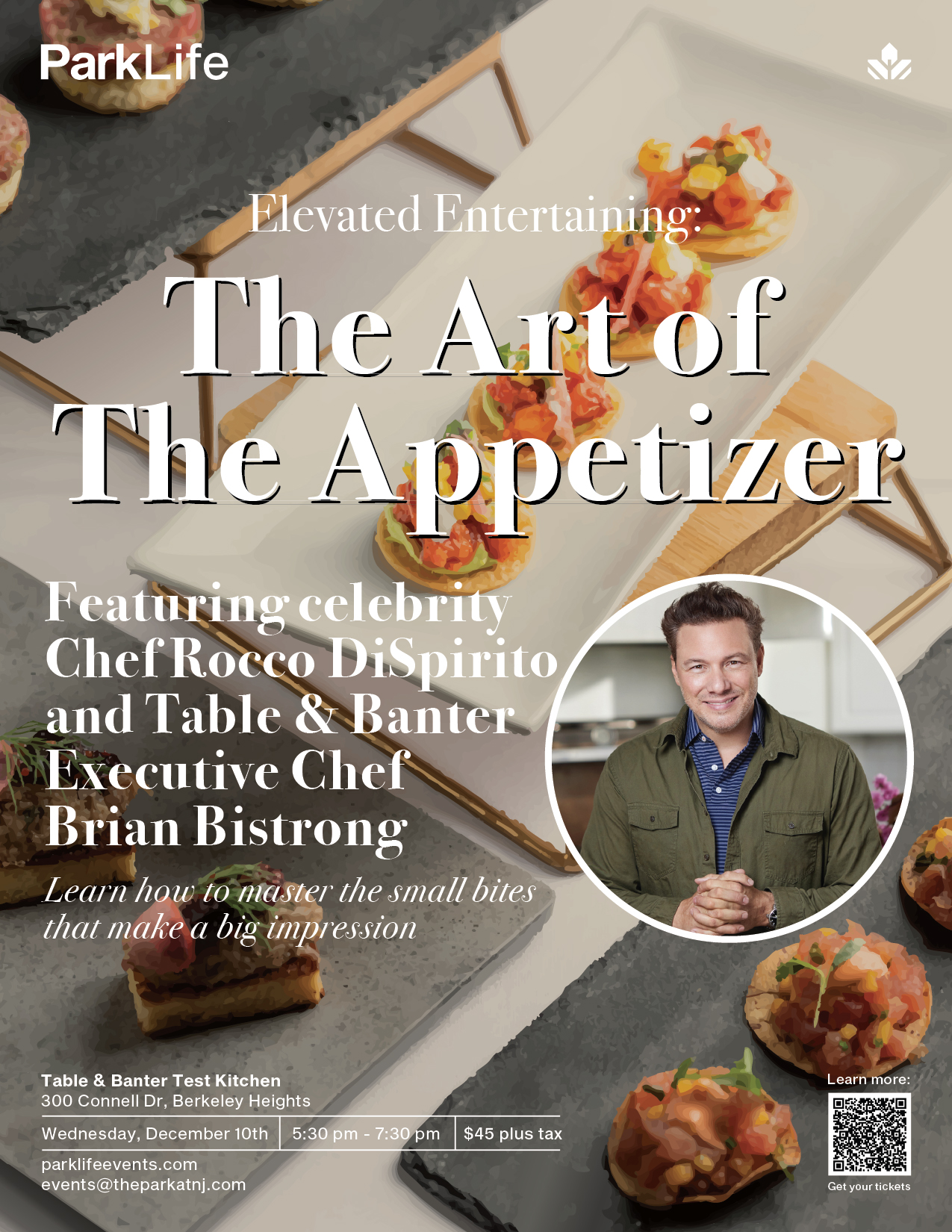 Just in time for the holidays, join us for a culinary demo with Celebrity Chef Rocco DiSpirito, where you’ll learn to craft elevated appetizers that impress every guest. From elegant bites to creative flavor pairings, this hands-on experience will inspire your inner host. Enjoy tasting each creation, take home a curated recipe card pack, and leave ready to entertain with confidence and style.